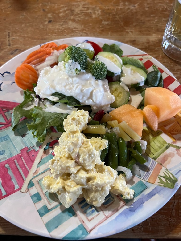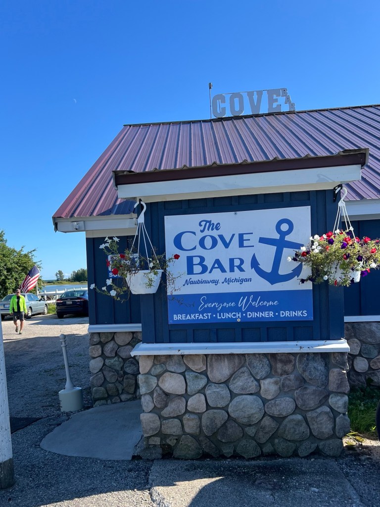 Since it’s Friday… it’s Fish Fry in the UP. Paul found the Cove Bar along the shore. It was busy for dinner tonight. We had the choice of Whitefish, Perch or Blue Gill including a massive salad bar, soup and dessert. Plenty of food! The salad bar had lots of choices including fresh lettuces and spinach with lots of toppings. We ate all of it… except maybe the soup. And a happy hour draft of microbrew or any beer was $1.75.