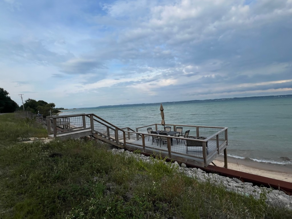 Last night Jim reached out to his sister who has a friend in Traverse City asking about a place to stay the night. To our good fortune Annette (sister) let us know at 9am this morning that her friends Katy and John welcomed us for the night! Lucky us!! John was home all day so we arrived around noon. Fortunately the rain had subsided all the way (5 miles) to the house.