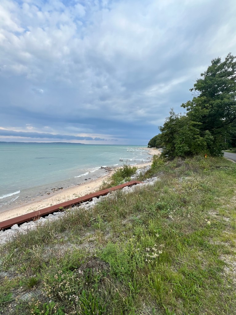 Our gracious WarmShowers hosts Ann and Gary, had a nice granola, fruit and coffee breakfast for us before we departed. On the road at 8:30am trying to get as far as possible toward Traverse City before the heavy rain started. The wind started sometime in the night… I could hear it blowing in the early morning hours. Other than the wind the temps this morning were comfortable.