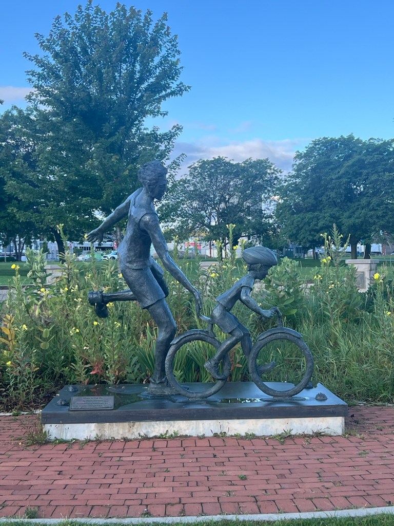 Sculpture in the park in Traverse City. Titled: Time to Let Go!
