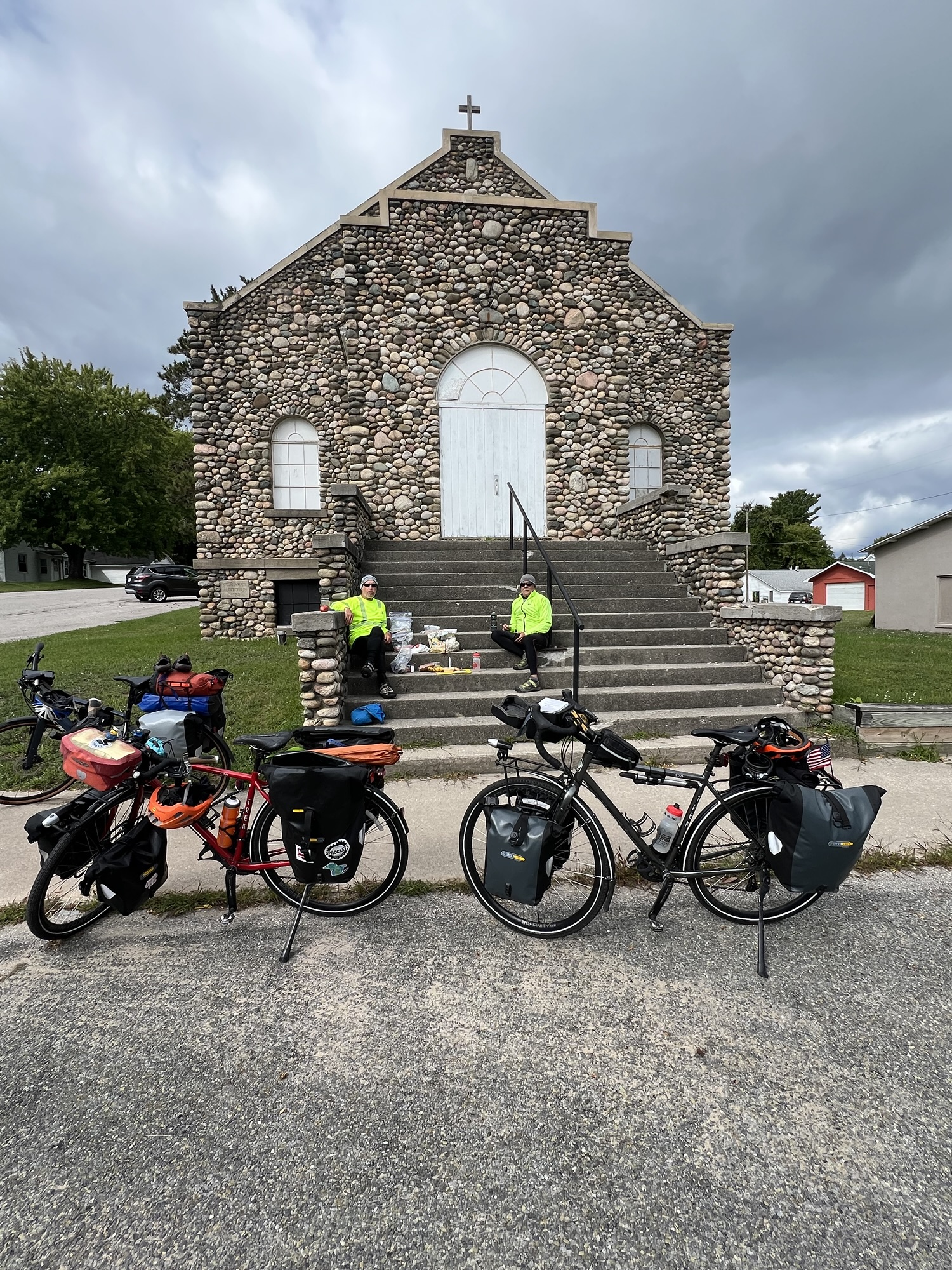 We found a great spot for lunch in Lake Leelanau at the St Mary’s Auditorium on the steps. It was on the leeward side stairway and a we had a bit of sun to make it comfortable.