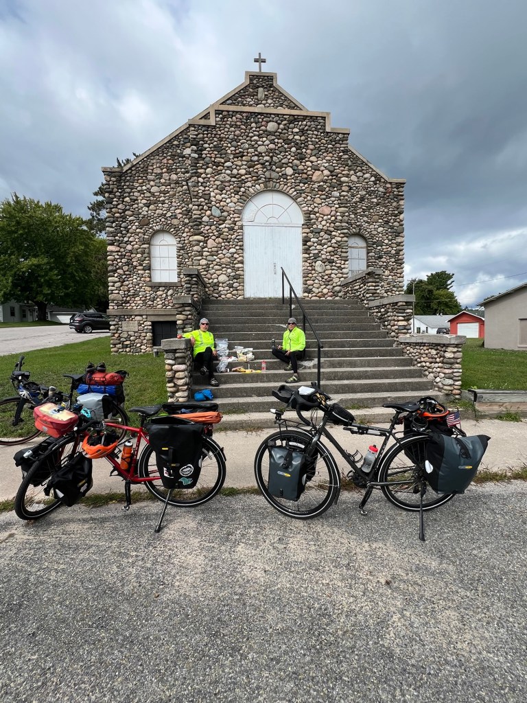 Tomorrow we start south along the Lake Michigan shoreline. Really looking forward to the Sleeping Bear Dunes Park. The sand dunes are supposed to be dramatically huge! Not looking forward to the rain and strong winds tomorrow…and the high of 58’ (chilly again). We also do not have a designated place to stay/camp tomorrow night. Hmmm….Wild camping??? Maybe