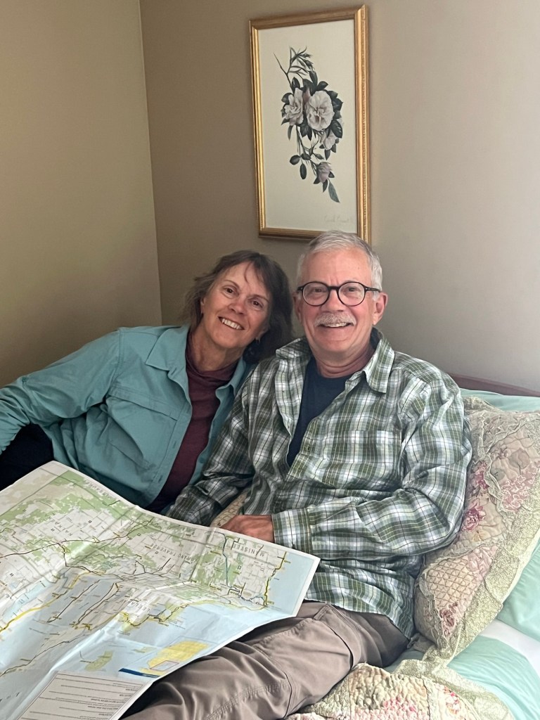 Our host John made us an over the top deluxe breakfast this morning! We had coffee, fried eggs, Canadian bacon, English muffin and a biscuit and gravy!! So good. Katy is a high school Spanish teacher so she was up and out as we were about to eat breakfast. They were so kind to take us on such short notice. People are kind.