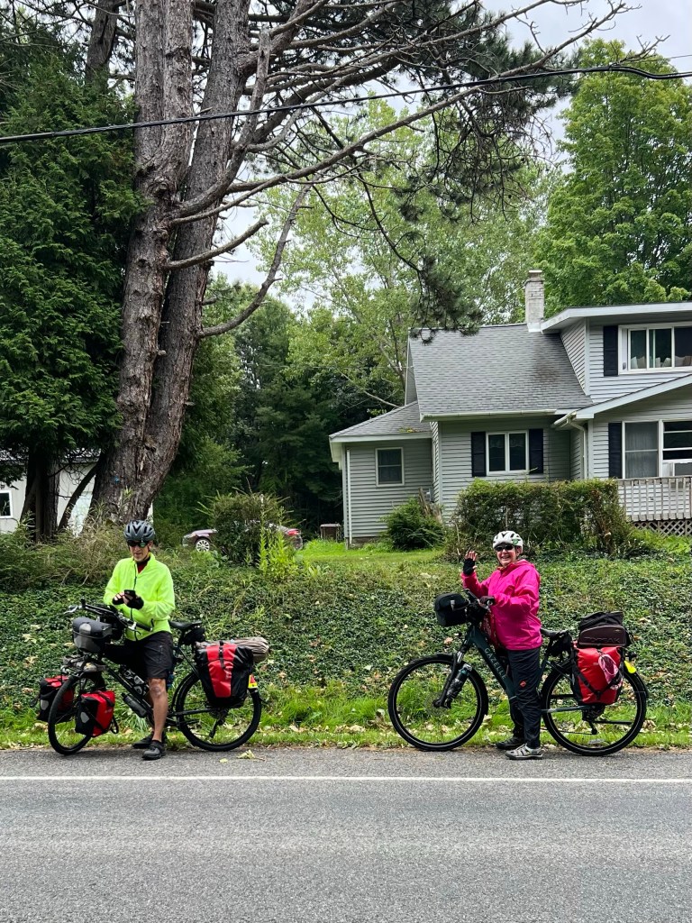 As we were near the bottom of Sister #3 we met up with a bike touring couple… Matt and Lisa… just starting up the long hill. They were from Dubuque IA. We stopped to chat about routes etc. from across the road. They seemed like pretty seasoned cyclists that were spending 3 weeks to circumnavigate Lake Michigan. However, he didn’t think they were going to finish it completely. They had a backup plan for a ride if they were short.