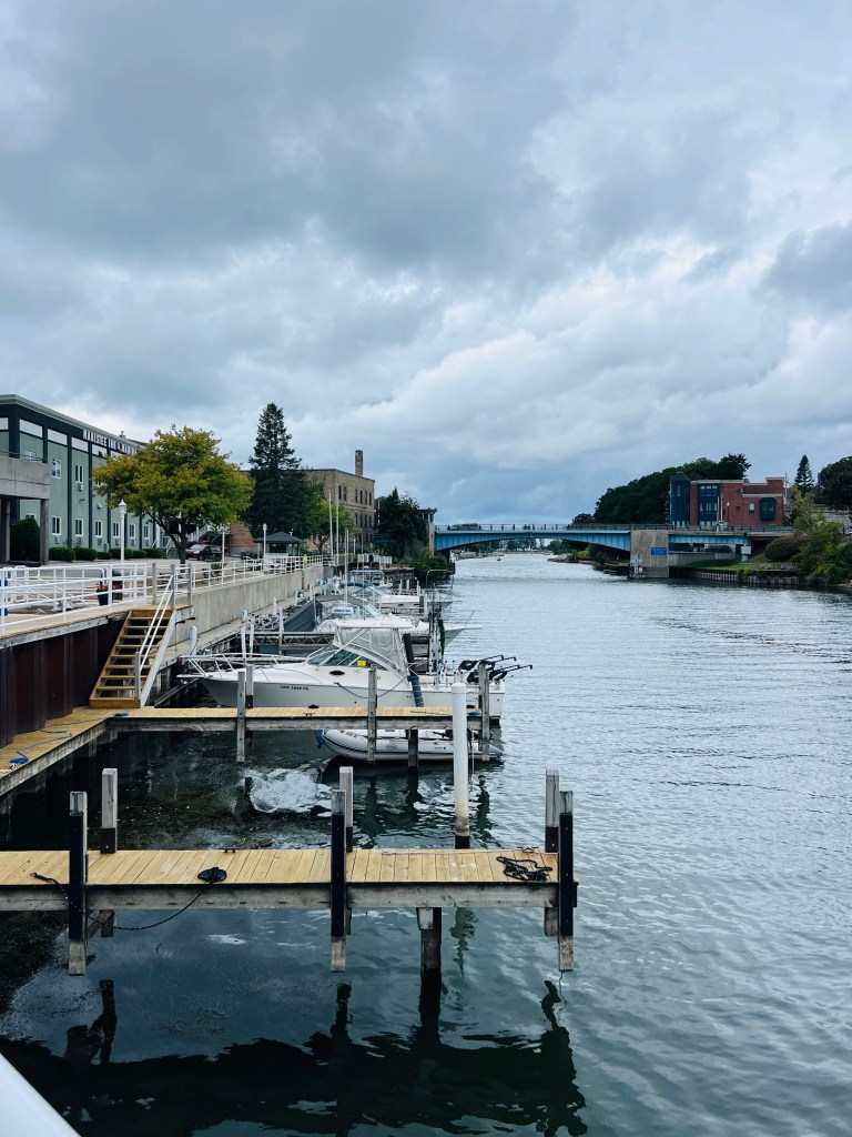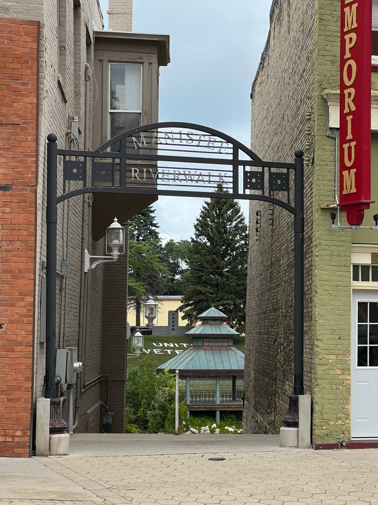 From Onekoma it was 12 miles to Manistee. We had looked up Manistee and saw they have a historic downtown built after a big fire 1871. It was a big lumber shipping port (as most towns in the area). Their historic district had lots of nice shops and restaurants and it was a nice river walk all the way to Lake Michigan. We walked a small part, then went to the TJ’s Pub for lunch.