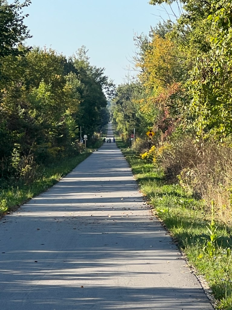 This afternoon we intersected another trail. We left the White Pine Trail and started on the Pere Marquette Trail. We are now heading east toward Bay City and Lake Huron.