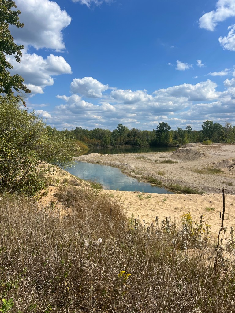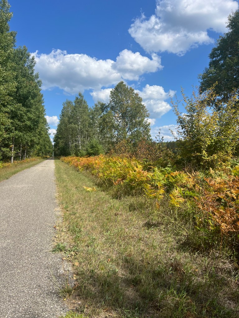 Heading east on Pere Marquette was not in a tunnel of trees like White Pine Trail. It was a warm sunny day so we could feel it. After last week being cold we kept our mouths shut about feeling hot… just stopped in the shade a few times and drank more water!