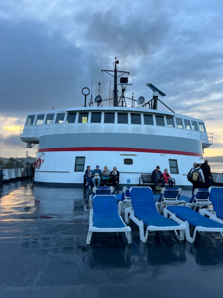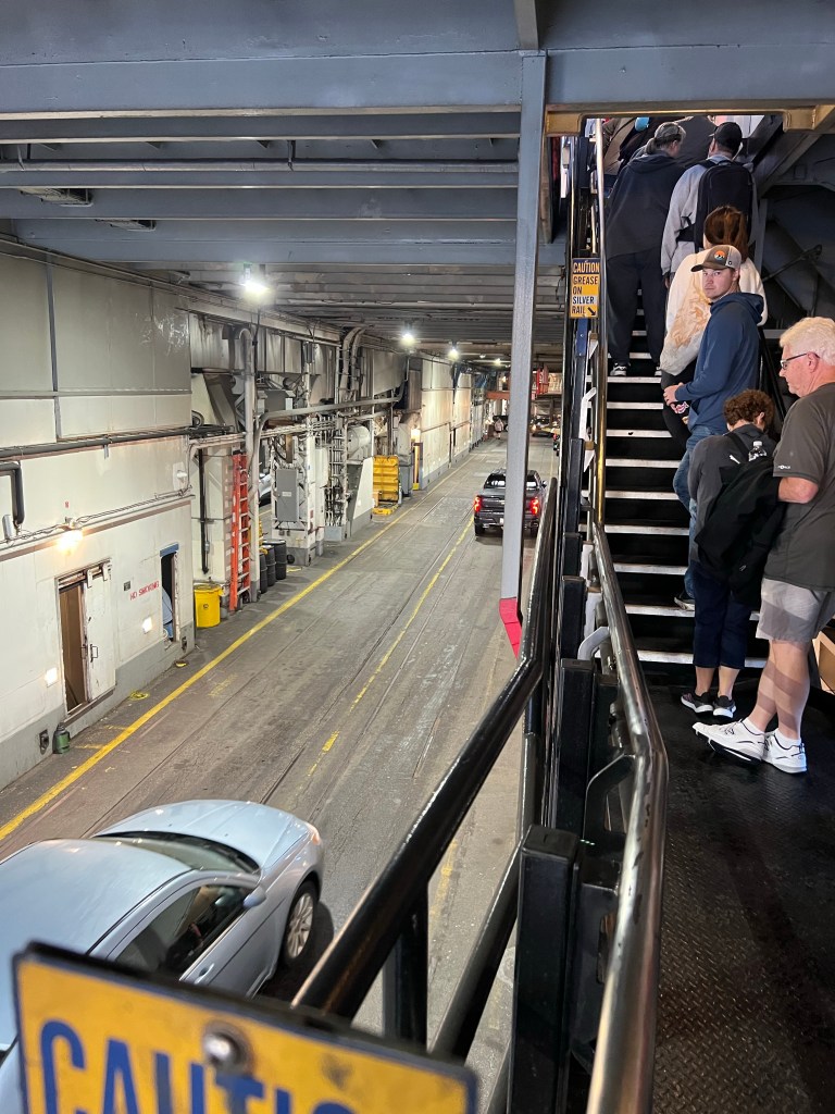 I just realized when departing the ferry that no one drives their car on or off this ferry. They have employees running back and forth and driving the cars to the parking lot. I’m not a ferry expert but haven’t seen that yet! People cue up in the parking lot until there car is parked there.