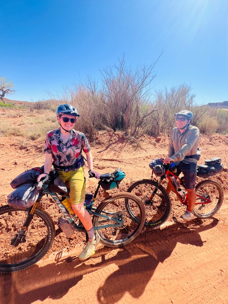 Right at the entry we stopped briefly to visit with a young couple bikepacking who just rode from the highway into the 17 mile route. They looked all set for a big dusty ride. We wished them well. Hope they enjoyed the scenery. It wasn’t busy traffic so they shouldn’t have had to eat too much dust. Not a lot of climbing just dips and rises.