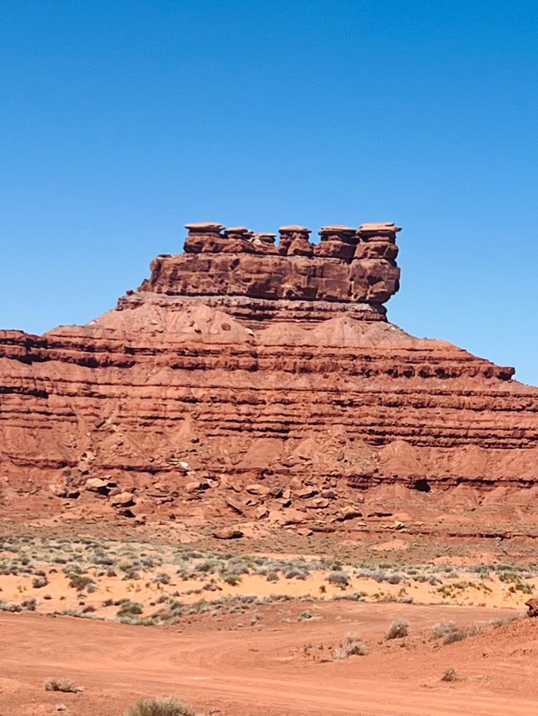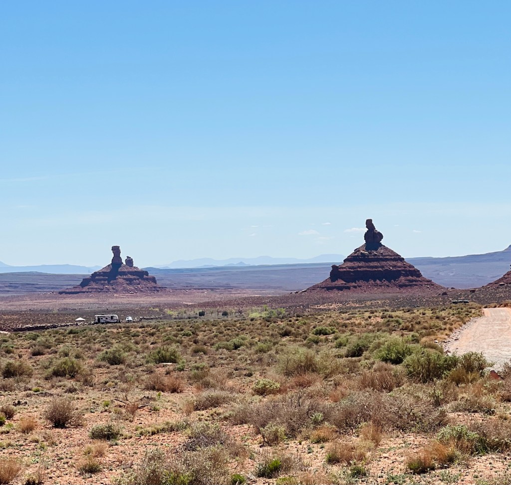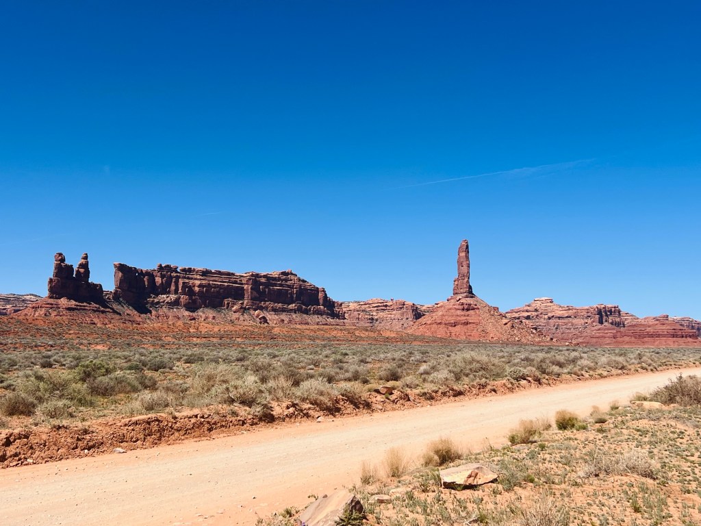 Valley of the Gods. This whole area was in the area called Bears Ears National Monument (BLM). We backtracked a few miles to enter this area. It’s a 17 miles dirt road from end to end.