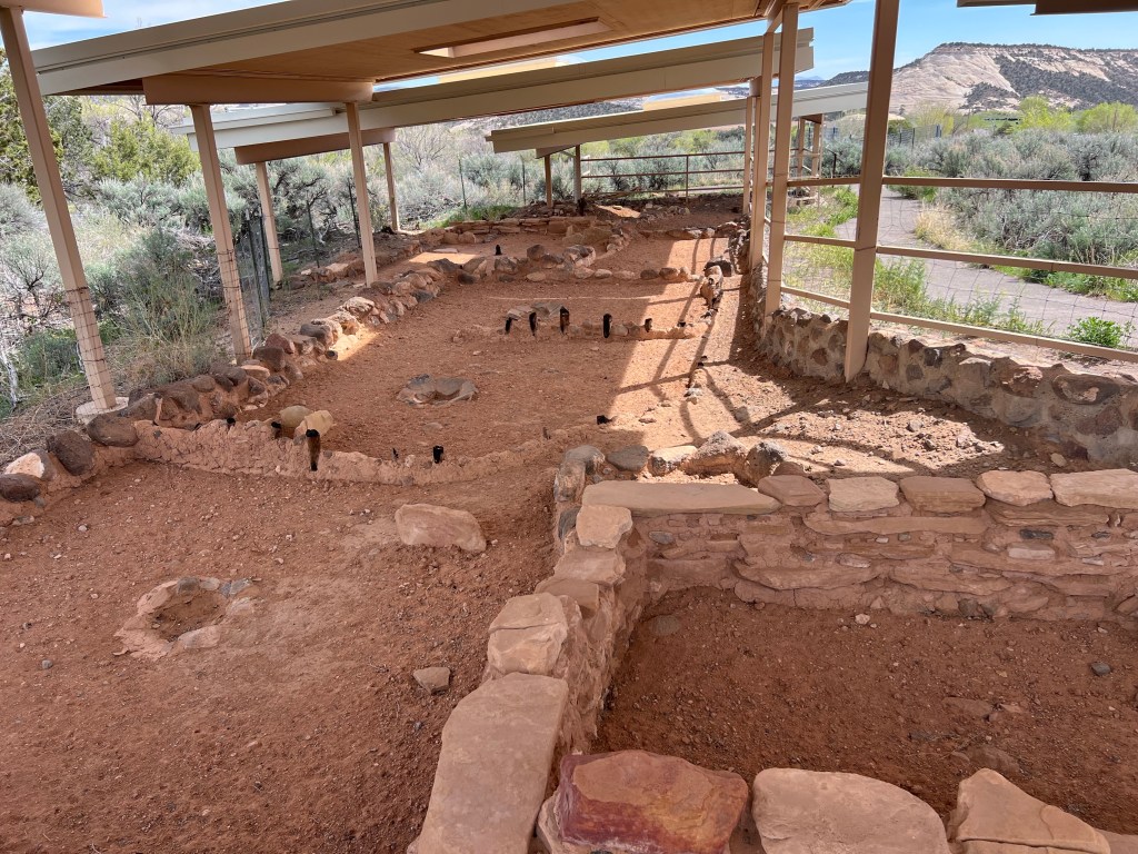 We stopped in Boulder to check out the Anasazi State Park Museum. It had a Pueblo ancestral replica of their home and storage rooms. Then they had the excavation of the original home.
