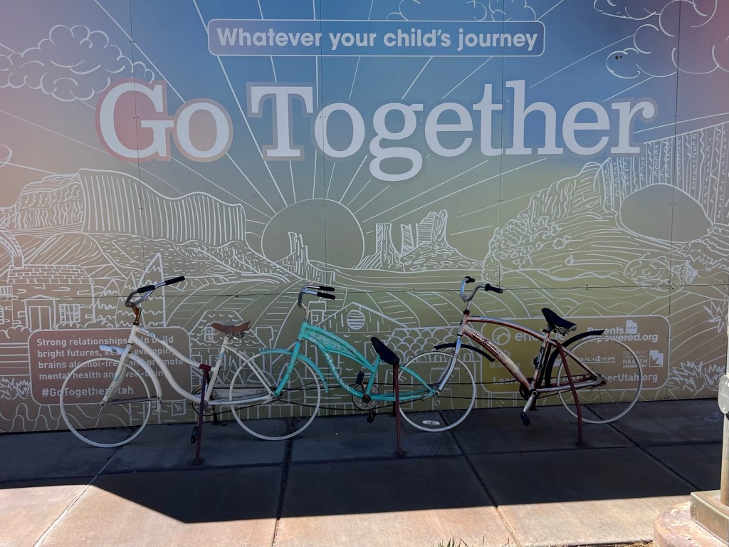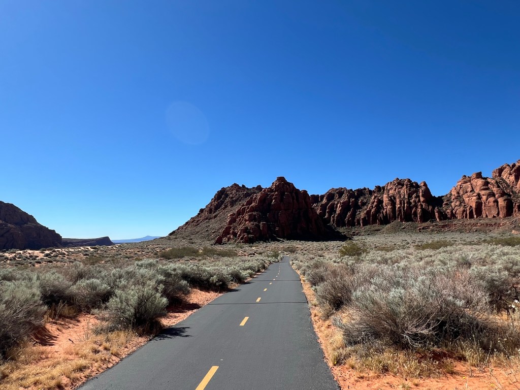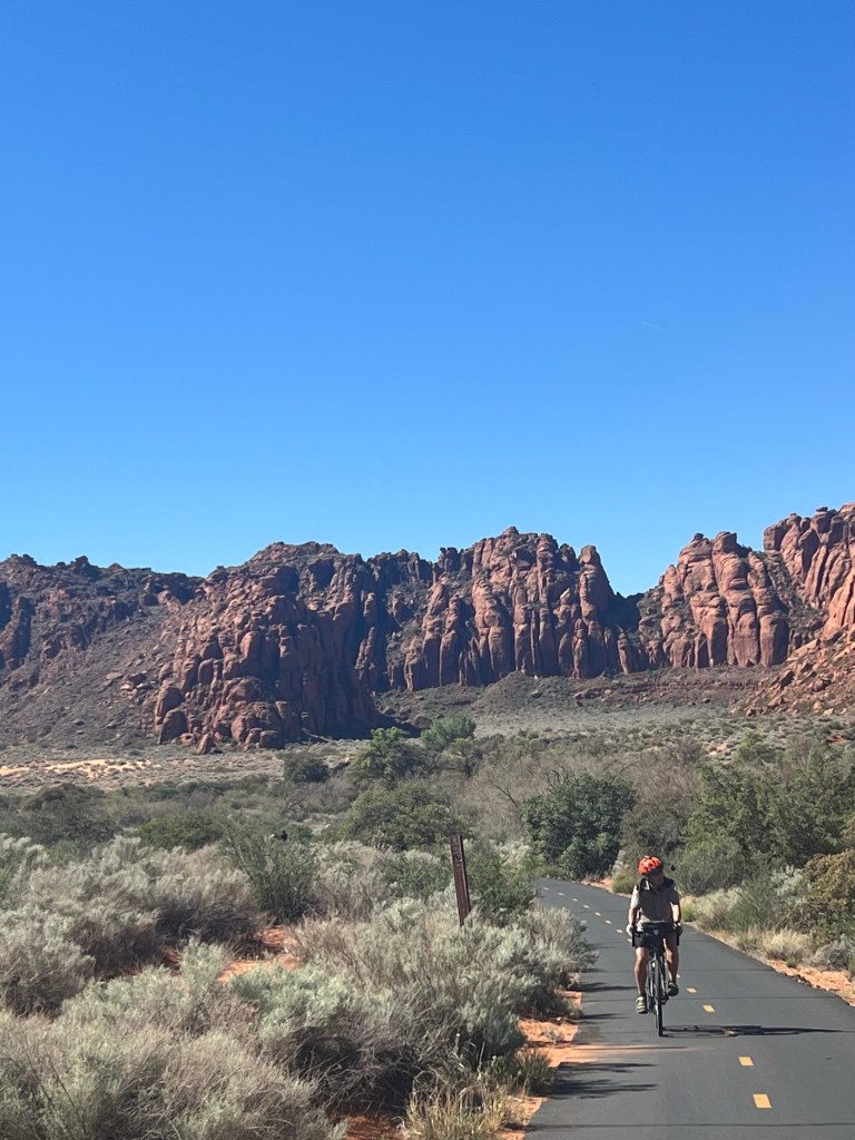 Along the bike path we had gobs of e-bikes once again. Not quite the chaos of Zion but the e-less bikes were very, very few… 5-10 at most including us! As a matter of fact there was a very busy e-bike rental store in the little shopping plaza where we parked the van. It was busy.