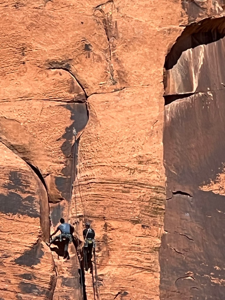 We worked our way up taking a few stops. We hadn’t ridden very far when we ditched our bike jackets. Along the way there were sand dunes, rock climbers, lava flows, campground, petrified sand dunes, lava tubes. All of these had short or long hikes you could take to see the area. It was a biking day for us… so no hikes were taken today.