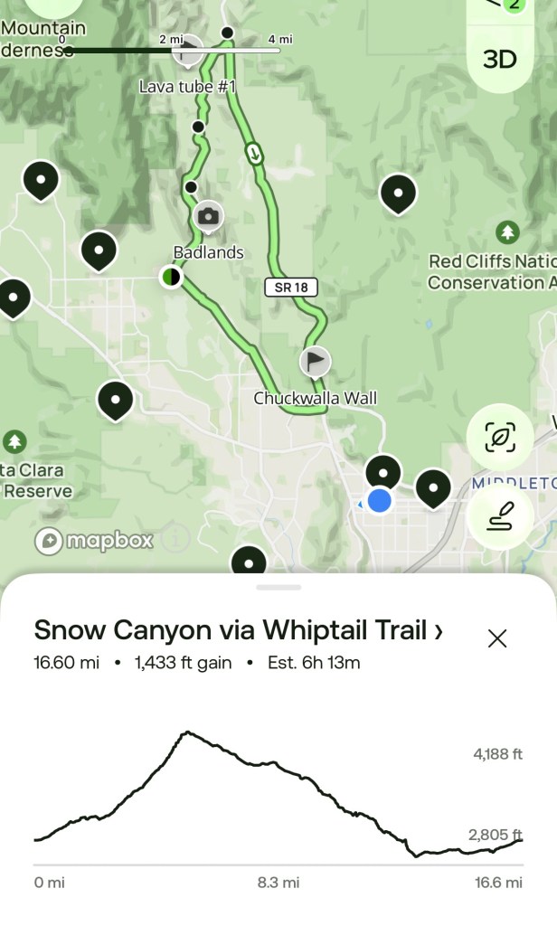 We took a bicycle ride through Snow Canyon State Park making a loop riding the Whiptail loop to Hwy 18 then back to where we started. Snow Canyon starts in a tiny town (suburb now) of St George UT.