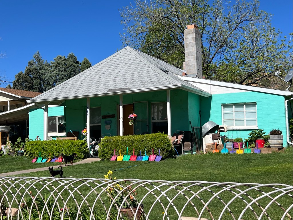 Gunlock Reservoir and Gunlock town. After the reservation we started climbing more aggressively toward the reservoir. The lake itself wasn’t too busy but the campground at Gunlock State Park was full and a little more traffic on the road but still pretty light. About 1.5 miles further up was an interesting little town called Gunlock. The first thing you see is an old gravel mine with all the old equipment scattered about. Pretty ugly gravel graveyard right before the little town. The town was a mix of tiny very old houses… the true locals! Then next door to those folks are the new locals that have built BIG beautiful homes with big yards and fences, etc right next door. Now I’m wondering how do they all get along in this tiny town? What’s a town hall meeting like?