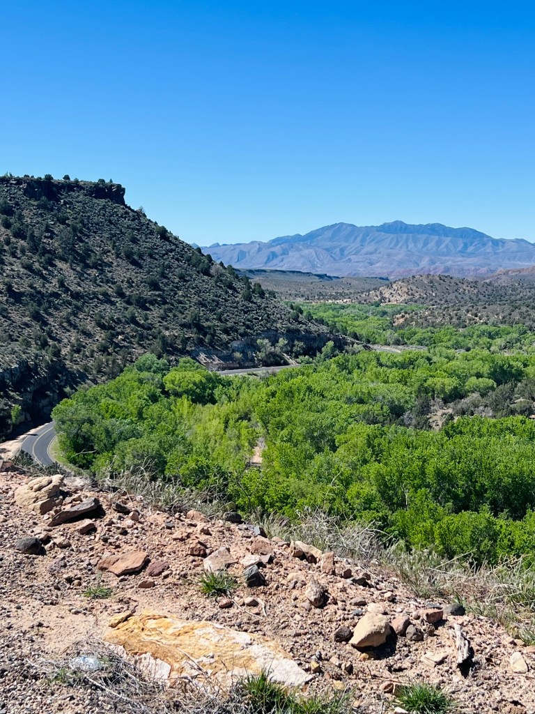 Shivwits Indian Reservation. We started by following the Santa Clara River valley through the Indian Reservation for the first 6-7 miles. It was a beautiful ride in a narrow valley… gradually climbing.