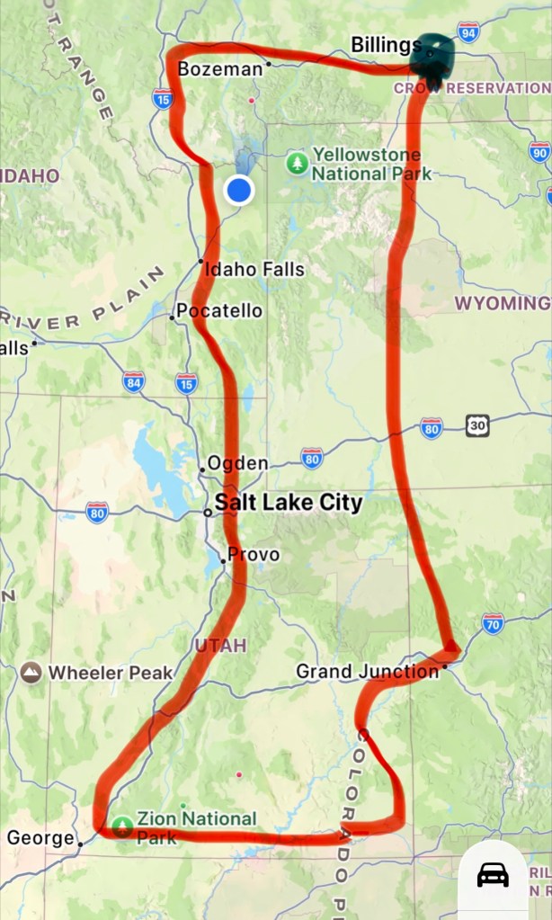 Summing it Up. Essentially we spent 3 weeks circumnavigating Utah and a dab into Wyoming, western Colorado and Idaho in a clockwise direction. From the Colorado western border, south to the Arizona border then southwestern Utah not far from the Nevada border, north through the Salt Lake City madness to the southern Idaho border back to southwestern Montana and home to Billings.